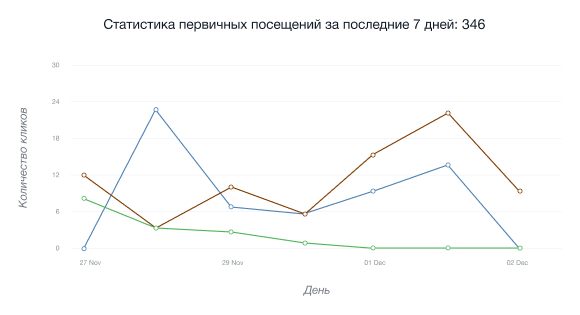 • График уникальных кликов по партнерской ссылке показывает число посетителей, которые впервые перешли по ней с определенного IP-адреса в течение последних 24 часов.